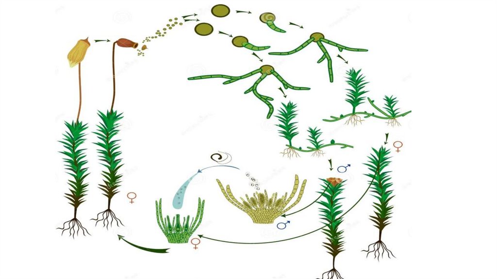 зависимости от влажности воздуха. Одни споры дают антеридии,
