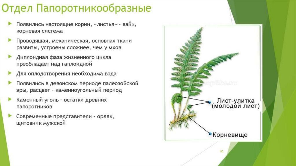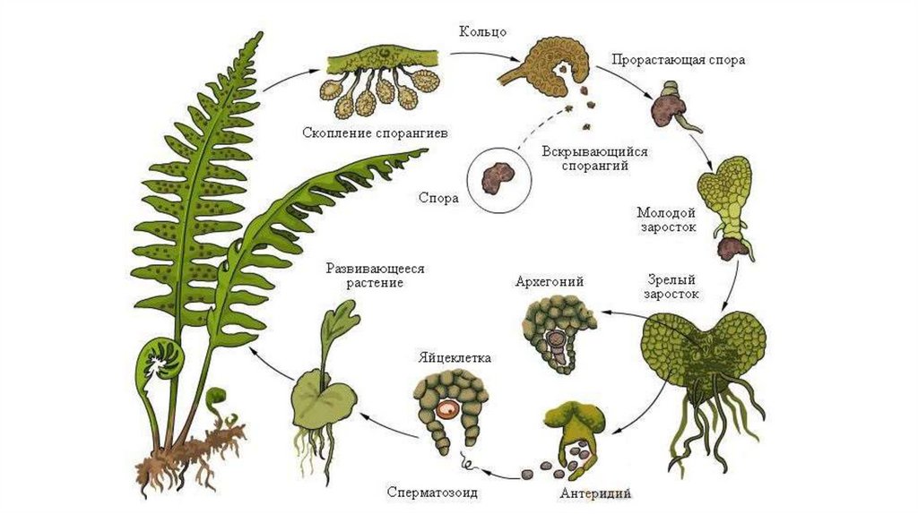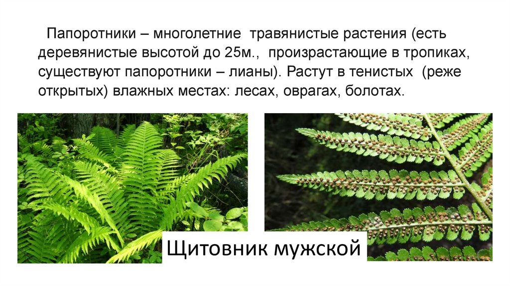 Папоротники – многолетние травянистые растения (естьдеревянистые высотой до 25м., произрастающие в тропиках,