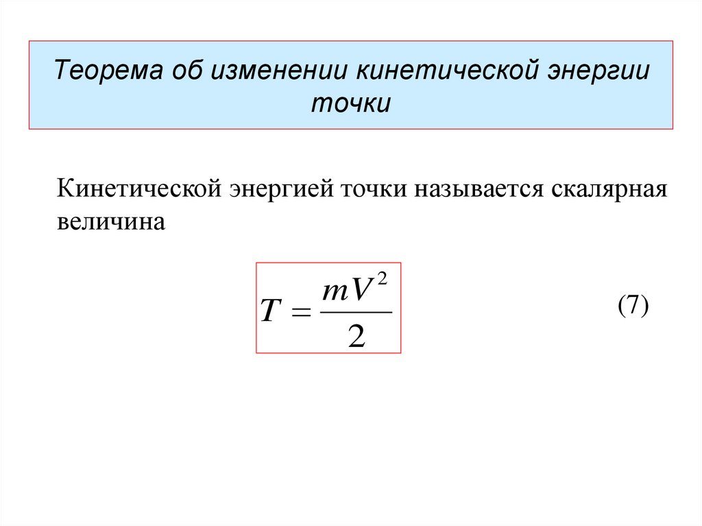 Кинетической энергией точки называется скалярнаявеличина