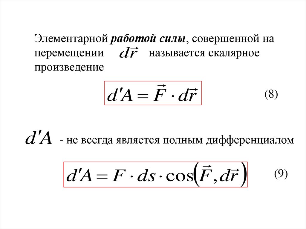 Элементарной работой силы, совершенной наперемещении dr называется скалярное