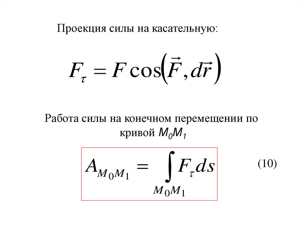 Проекция силы на касательную:F F cos F , dr