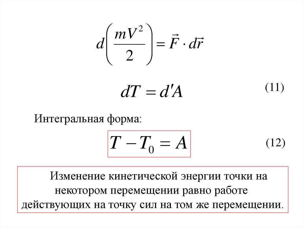 Изменение кинетической энергии точки на