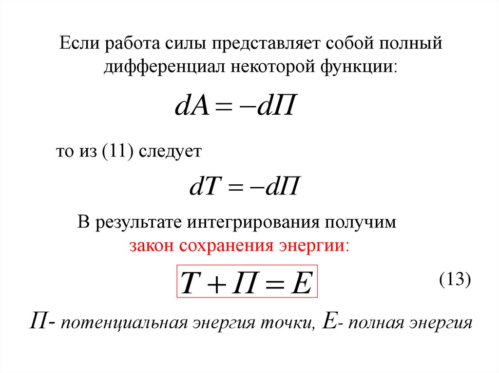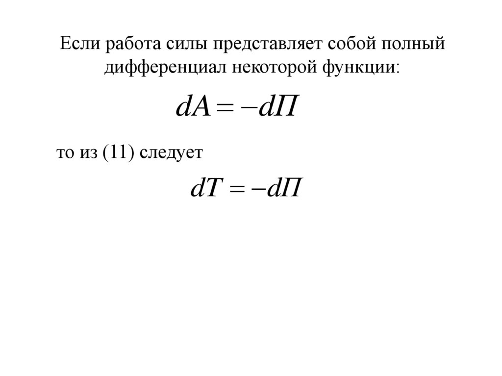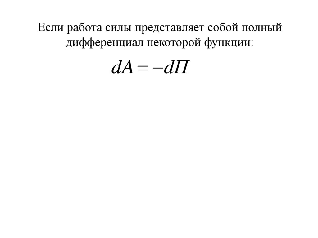 Если работа силы представляет собой полныйдифференциал некоторой функции: