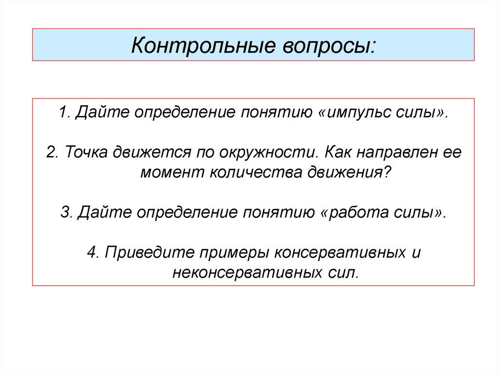 Контрольные вопросы:1. Дайте определение понятию «импульс силы».
