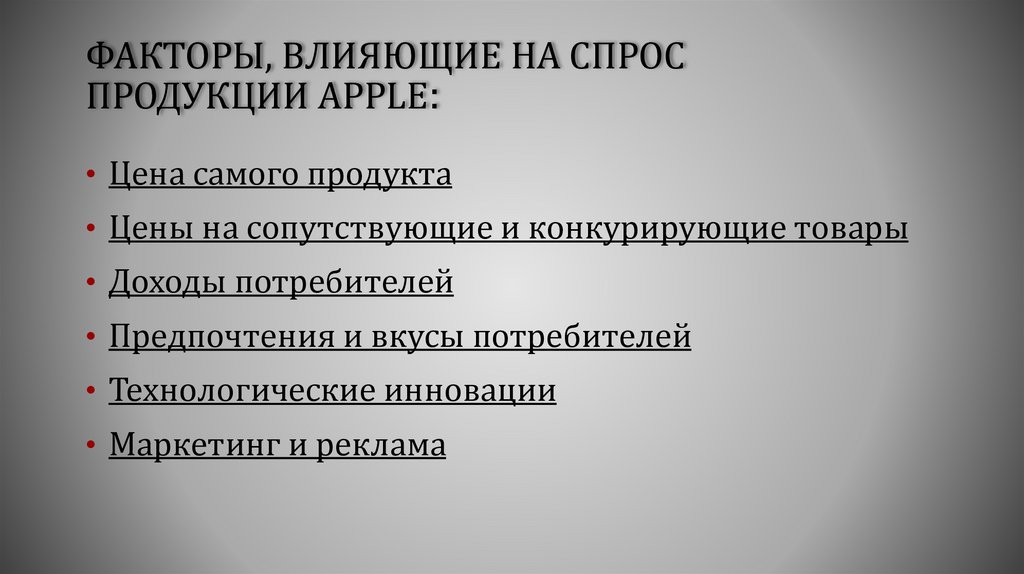 ФАКТОРЫ, ВЛИЯЮЩИЕ НА СПРОСПРОДУКЦИИ APPLE: