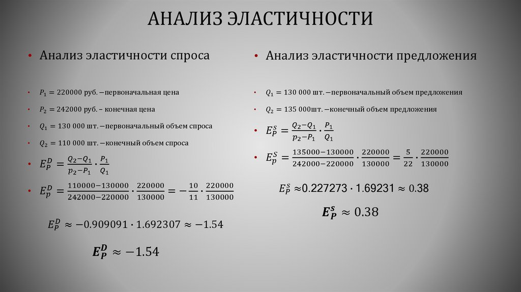 АНАЛИЗ ЭЛАСТИЧНОСТИ• Анализ эластичности спроса