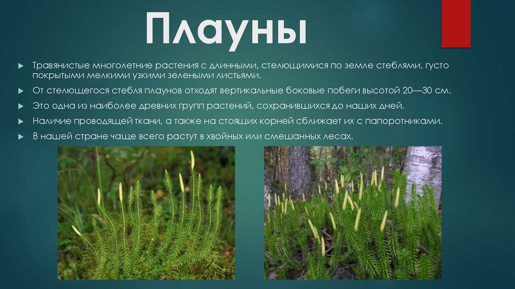 От стелющегося стебля плаунов отходят вертикальные боковые побеги высотой 20—30 см.