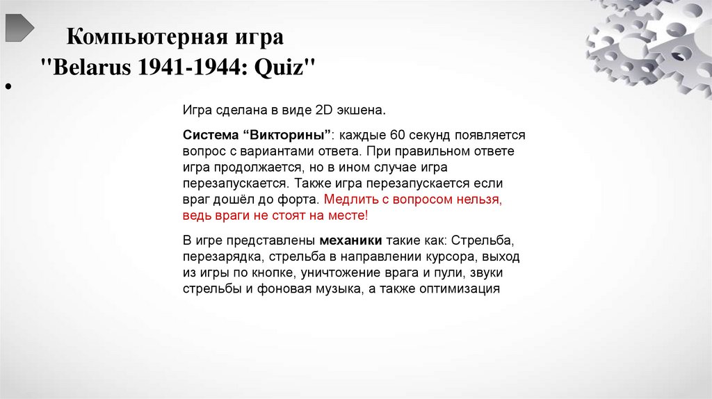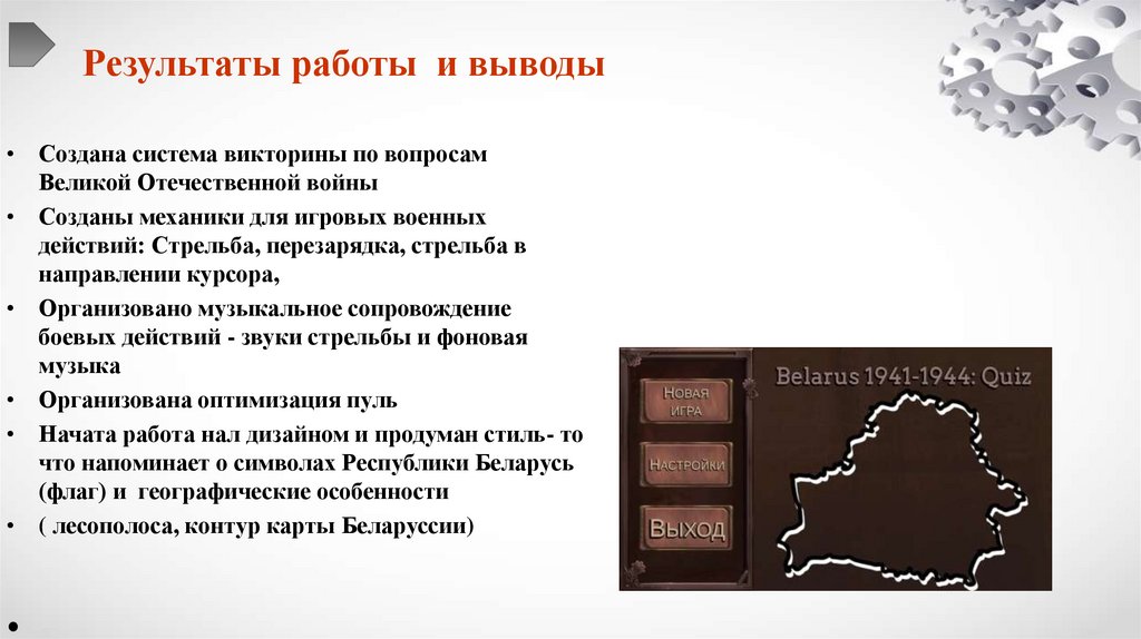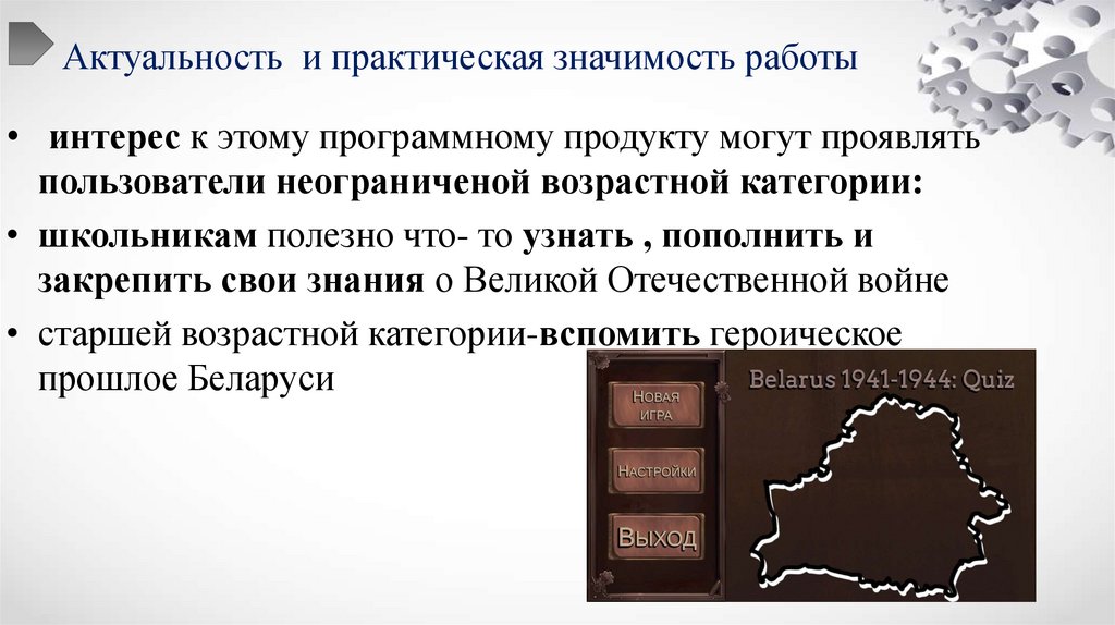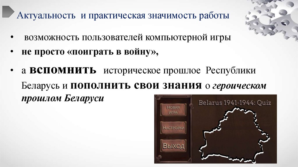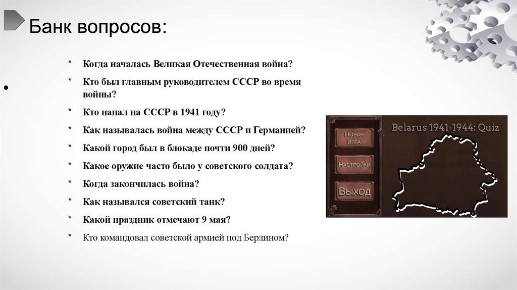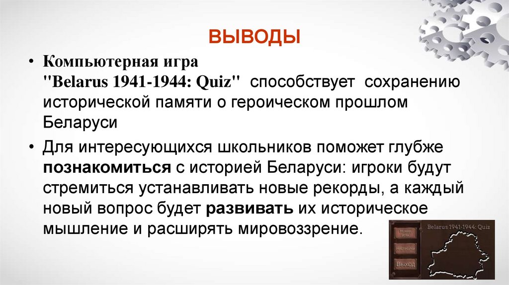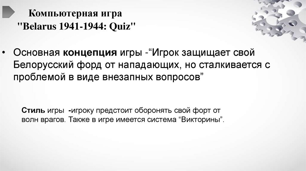 • Компьютерная игра"Belarus 1941-1944: Quiz" способствует сохранению
