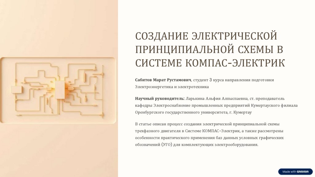 СОЗДАНИЕ ЭЛЕКТРИЧЕСКОЙПРИНЦИПИАЛЬНОЙ СХЕМЫ В