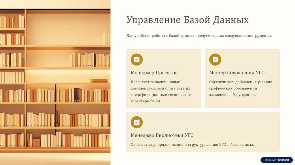 Отвечает за упорядочивание и структуризацию УГО в базе данных.