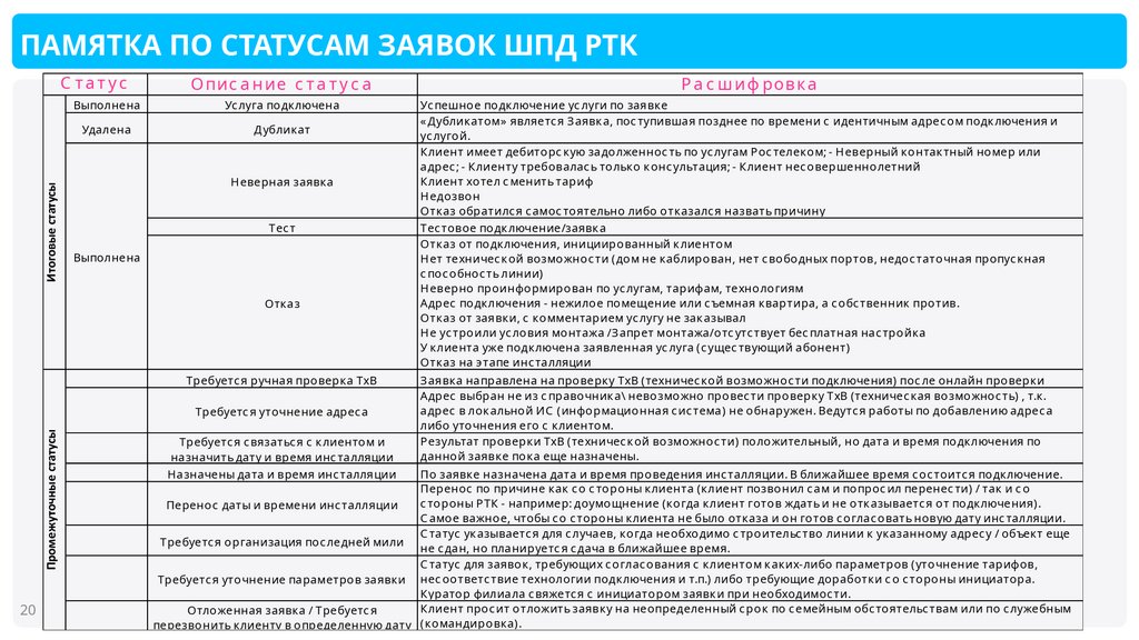 статусы каждой заявки