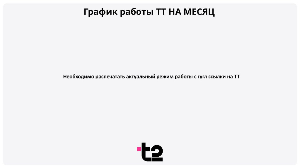 График работы ТТ НА МЕСЯЦНеобходимо распечатать актуальный режим работы с гугл ссылки на ТТ