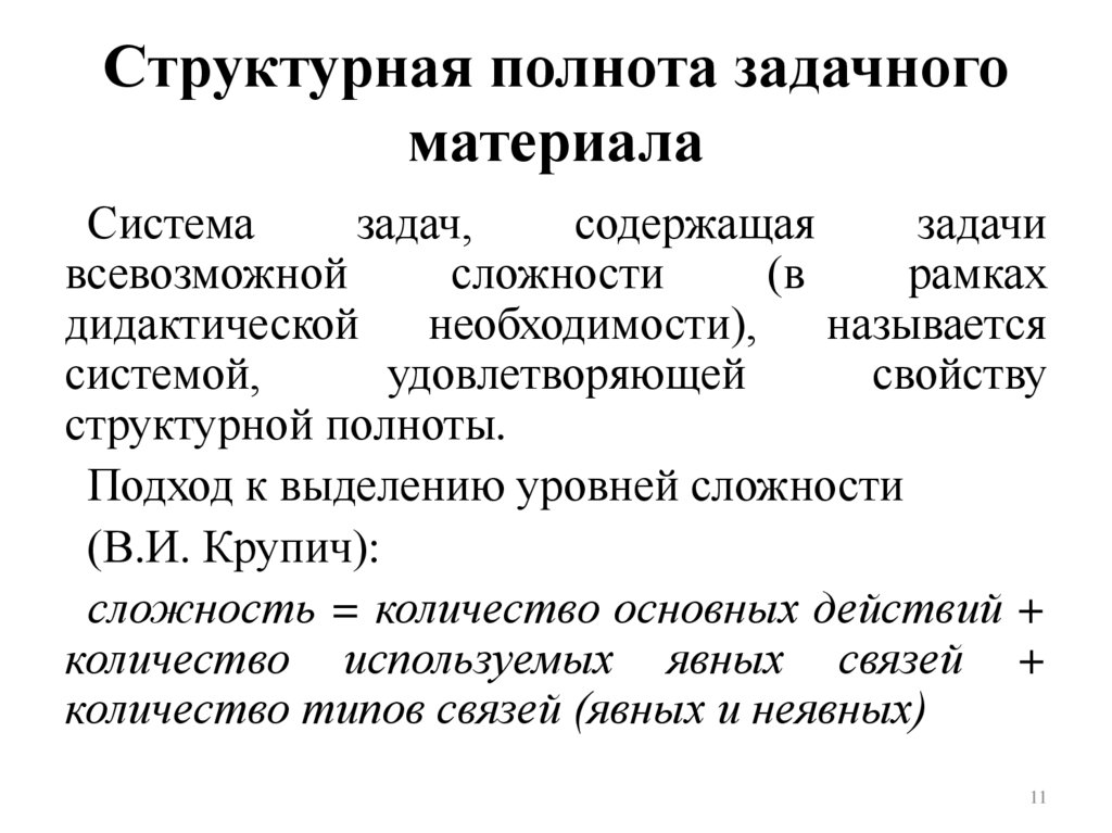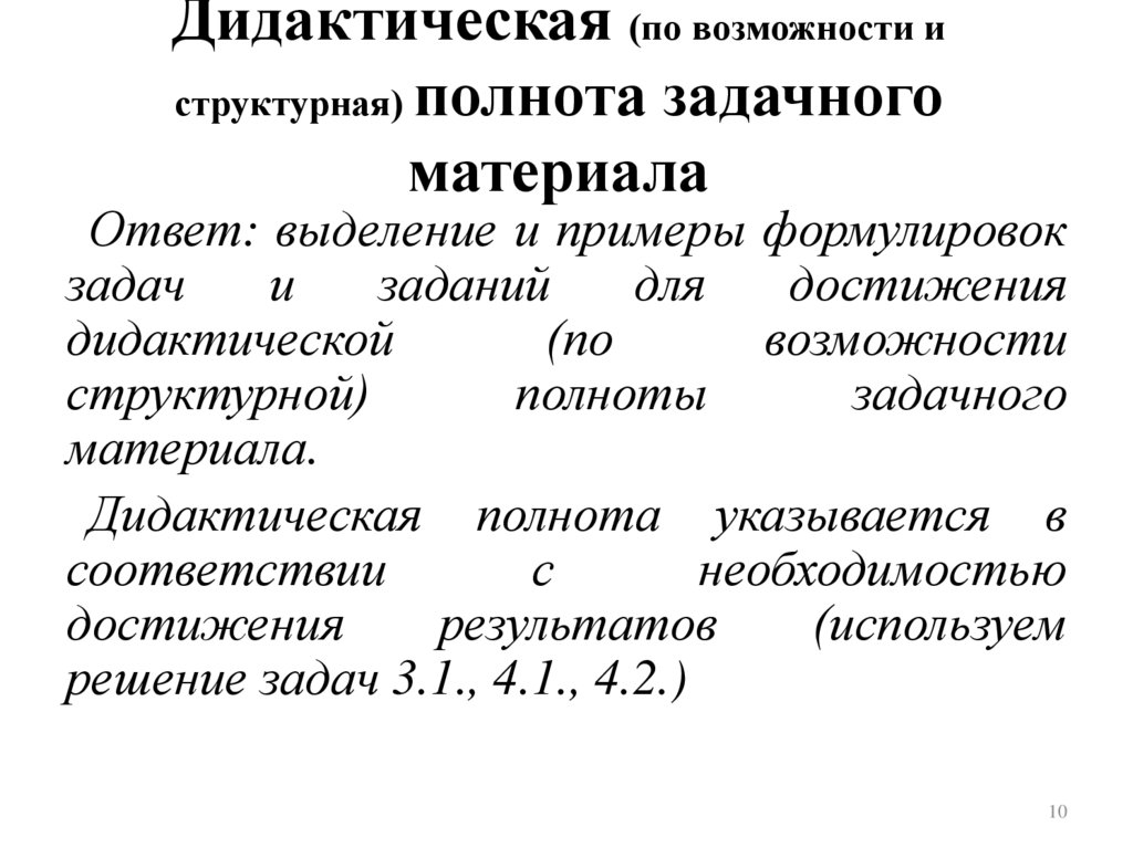 10. Дидактическая (по возможности и структурная) полнота задачного материала