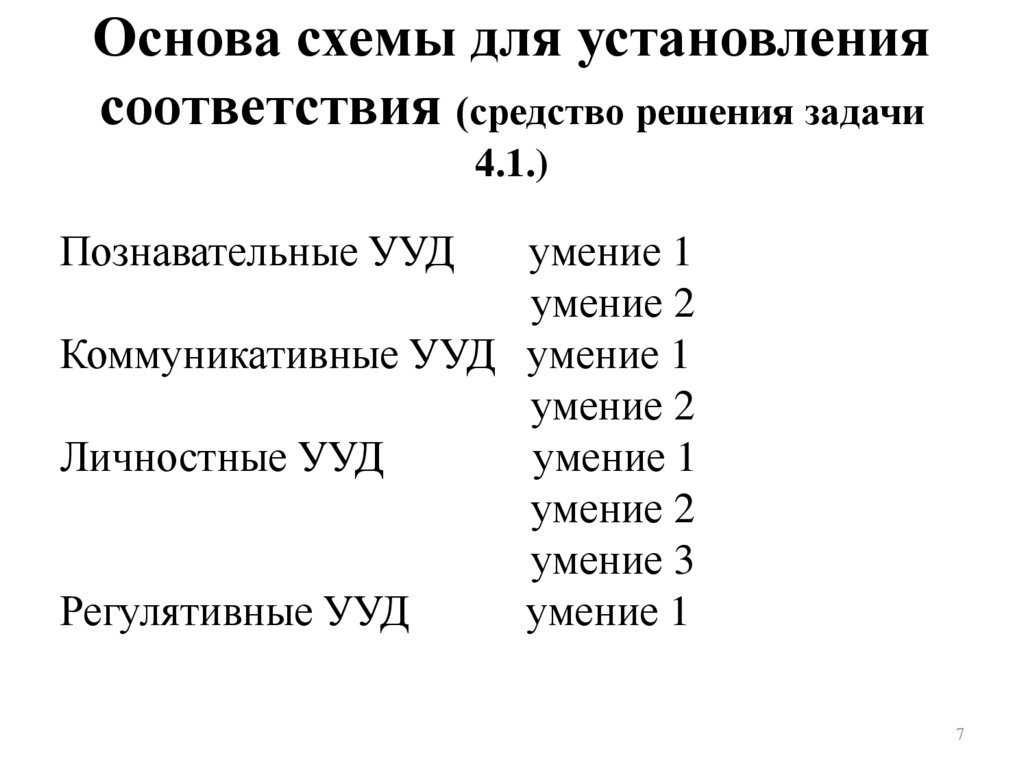 7. Основа схемы для установления соответствия (средство решения задачи 4.1.)
