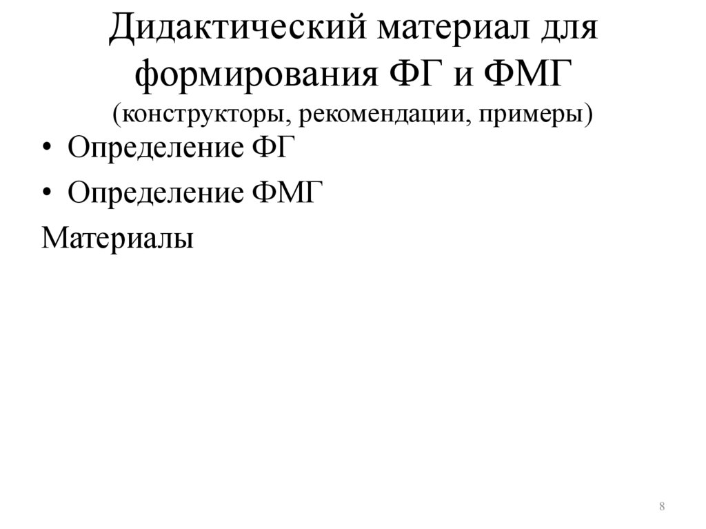 8. Дидактический материал для формирования ФГ и ФМГ (конструкторы, рекомендации, примеры)