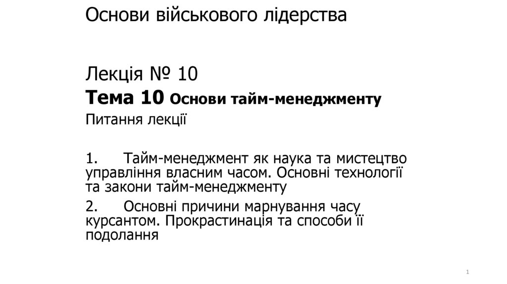 Лекція № 10Тема 10 Основи тайм-менеджменту