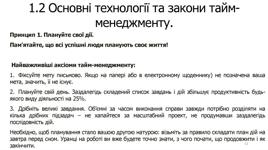 Основні технології та закони таймменеджменту.