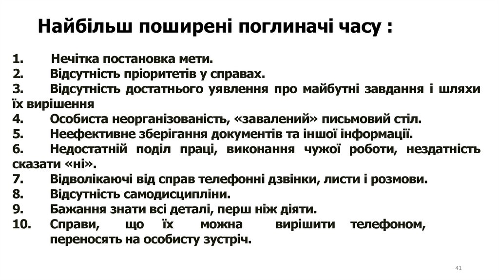 41. Найбільш поширені поглиначі часу :