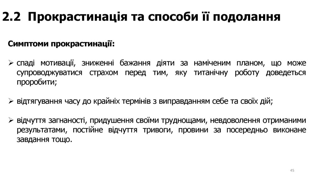 2.2 Прокрастинація та способи її подоланняСимптоми прокрастинації: