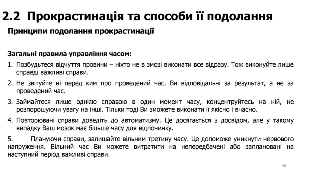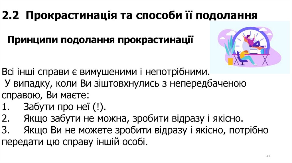 2.2 Прокрастинація та способи її подоланняПринципи подолання прокрастинації