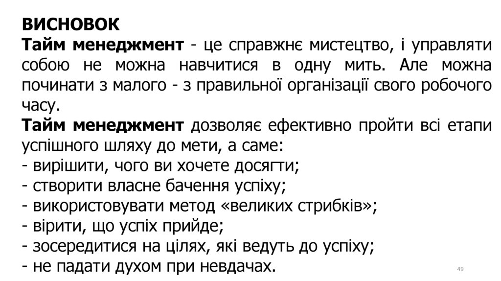 ВИСНОВОКТайм менеджмент - це справжнє мистецтво, і управляти