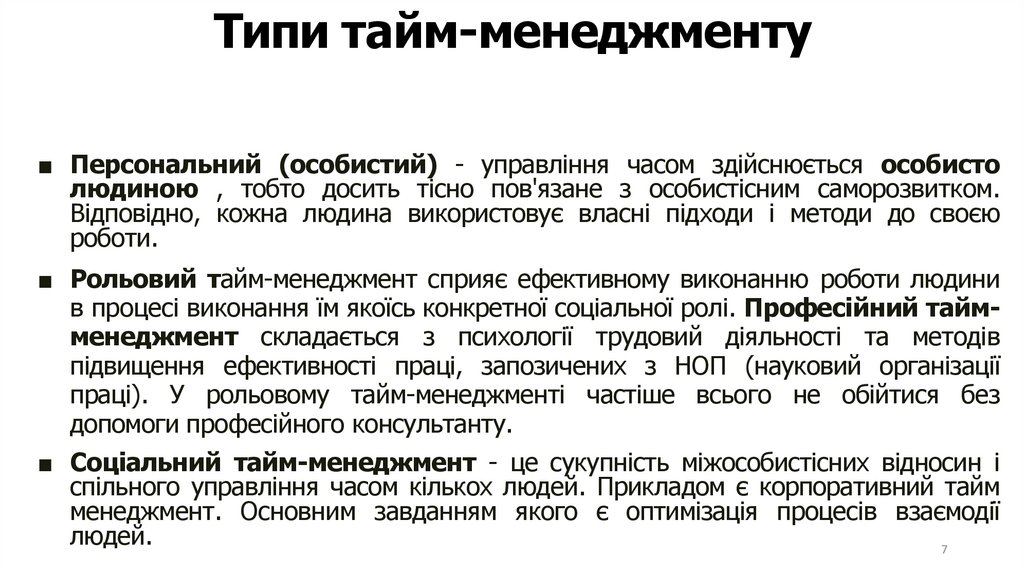 7. Типи тайм-менеджменту