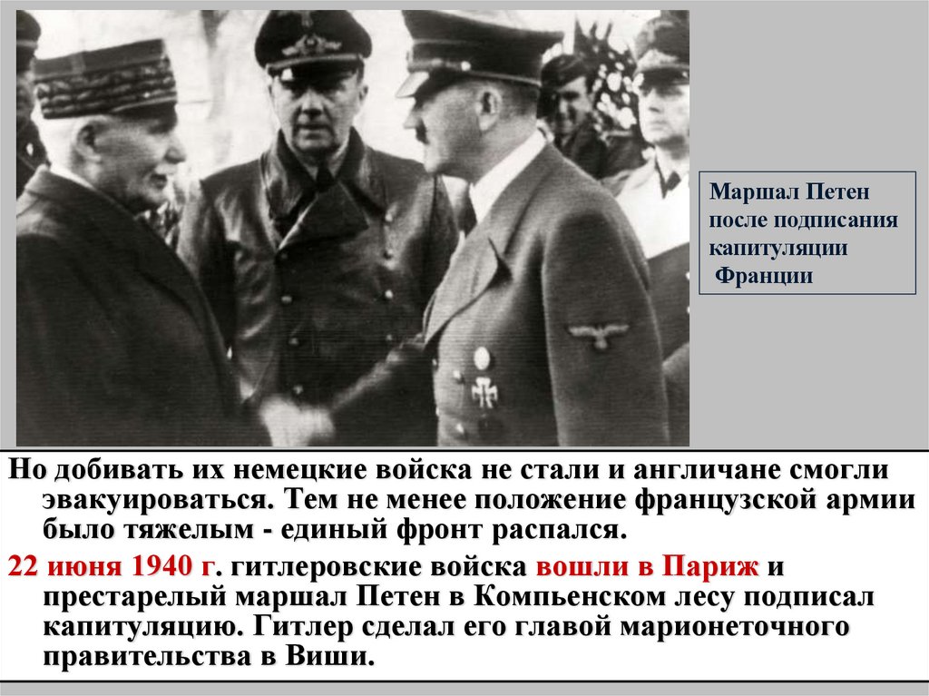 22 июня 1940 г. гитлеровские войска вошли в Париж и