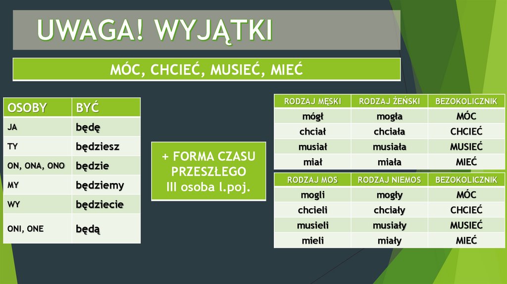 MÓC, CHCIEĆ, MUSIEĆ, MIEĆRODZAJ MĘSKI