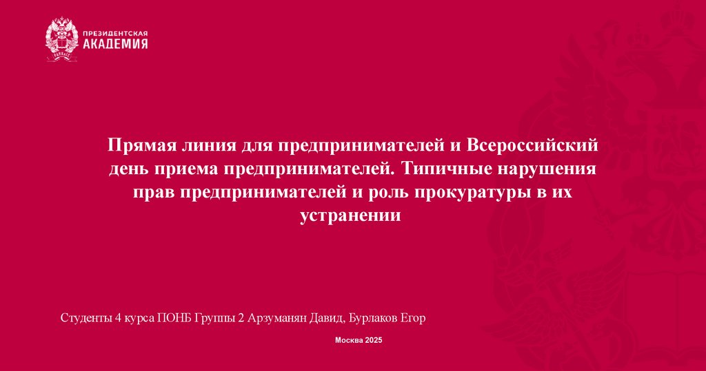 Прямая линия для предпринимателей и Всероссийскийдень приема предпринимателей. Типичные нарушения
