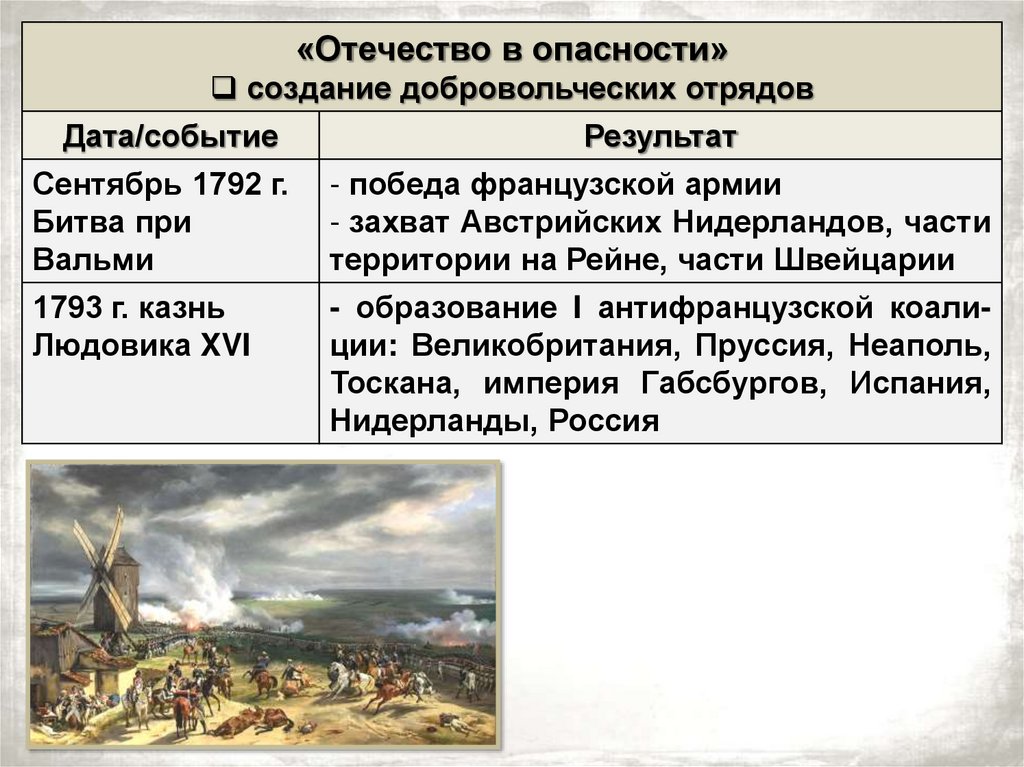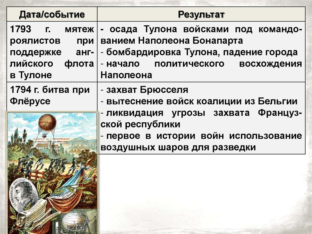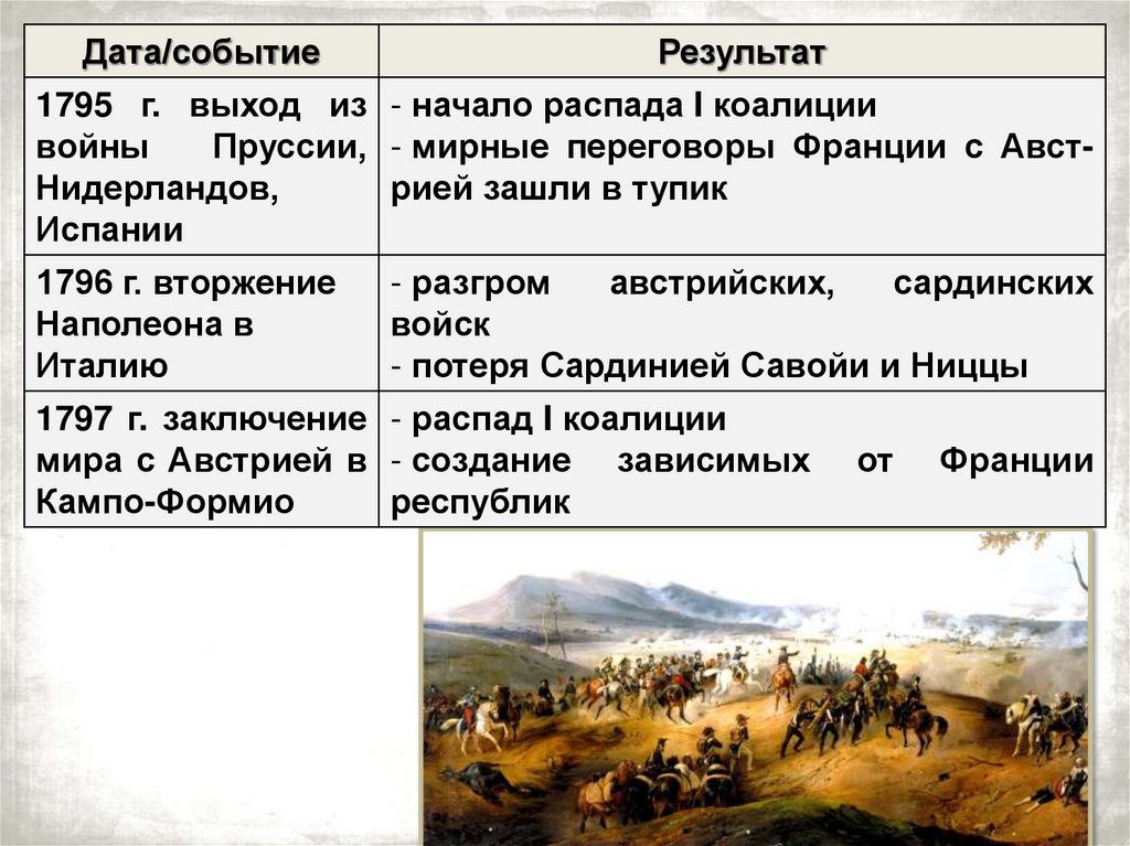 - образование I антифранцузской коалиции: Великобритания, Пруссия, Неаполь,
