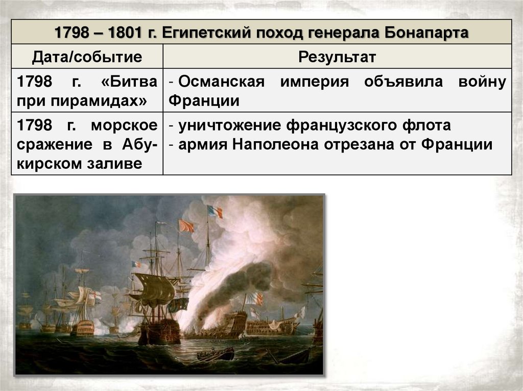 1798 – 1801 г. Египетский поход генерала БонапартаДата/событие