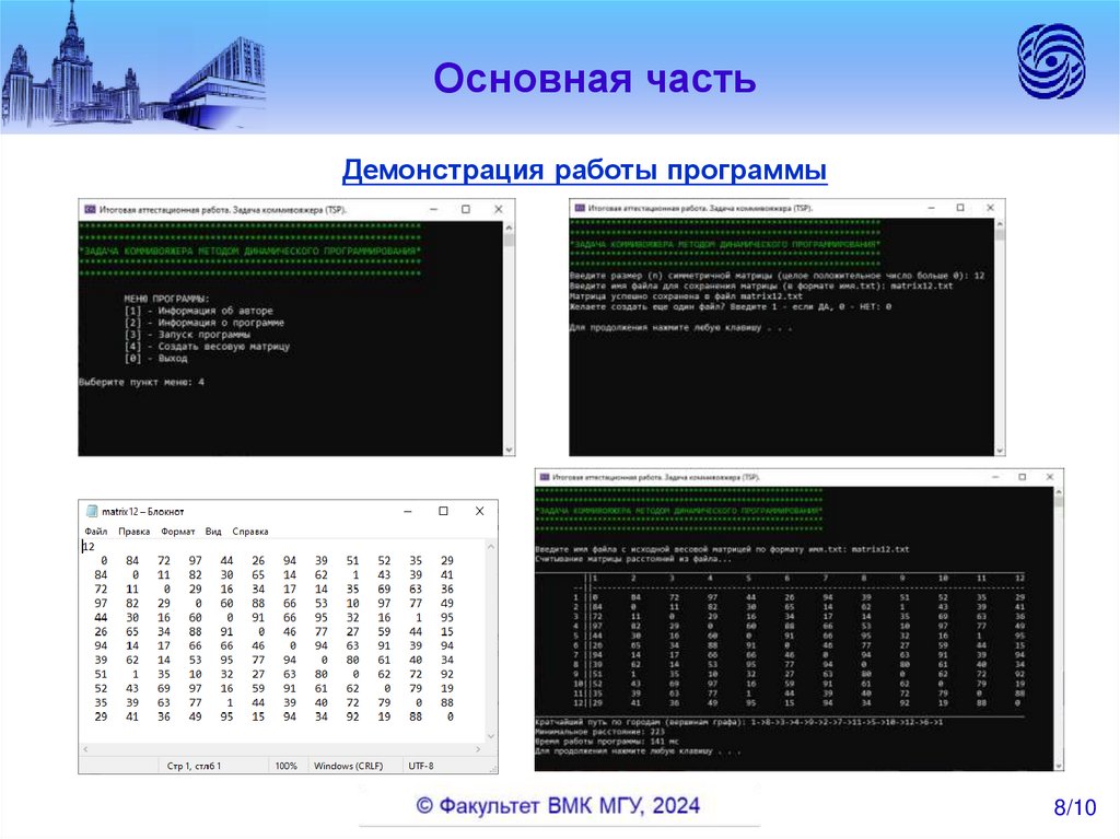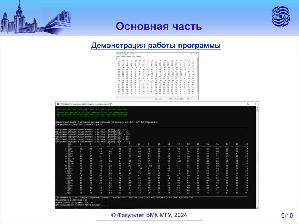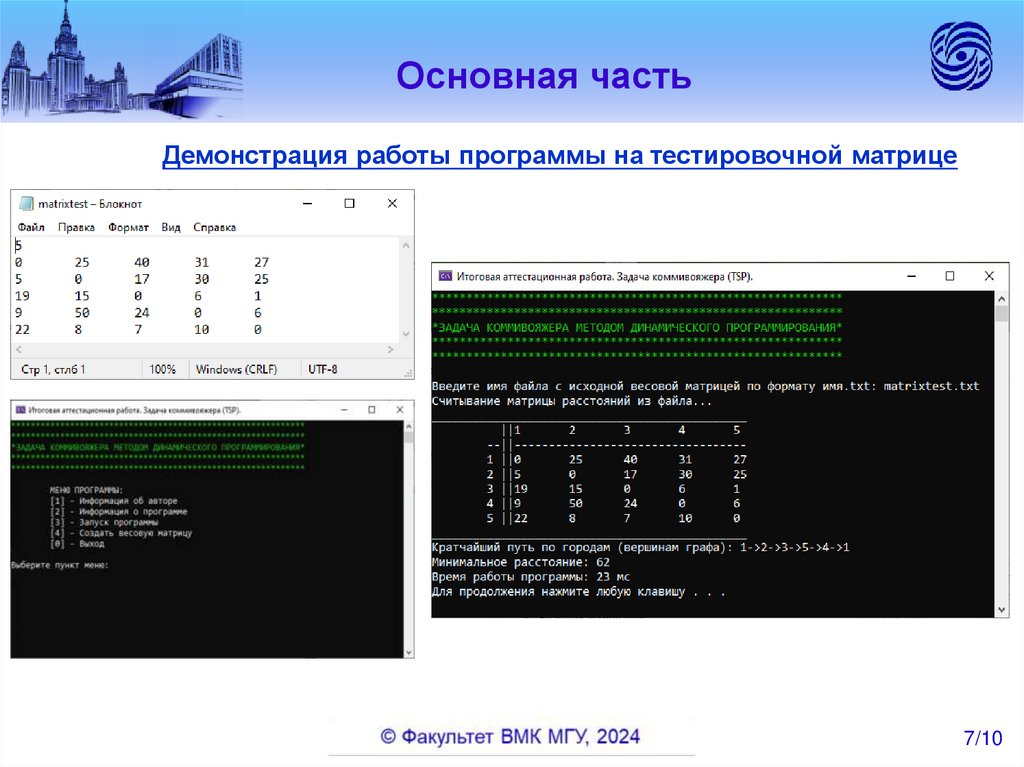 Основная частьДемонстрация работы программы на тестировочной матрице