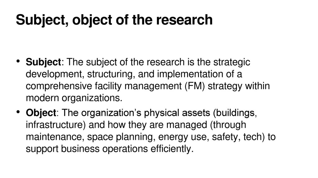 Subject, object of the research• Subject: The subject of the research is the strategic