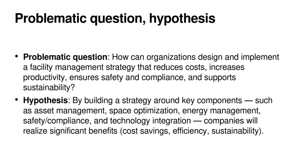 Problematic question, hypothesis• Problematic question: How can organizations design and implement