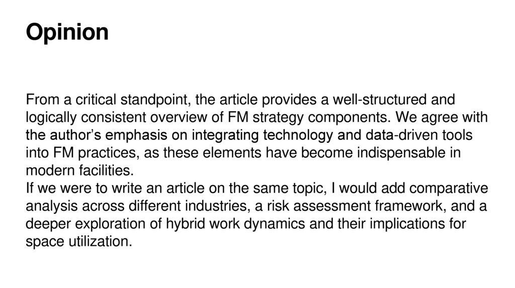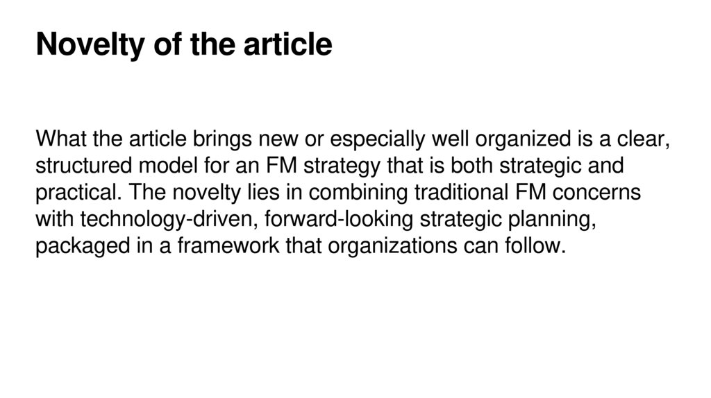 logically consistent overview of FM strategy components. We agree with