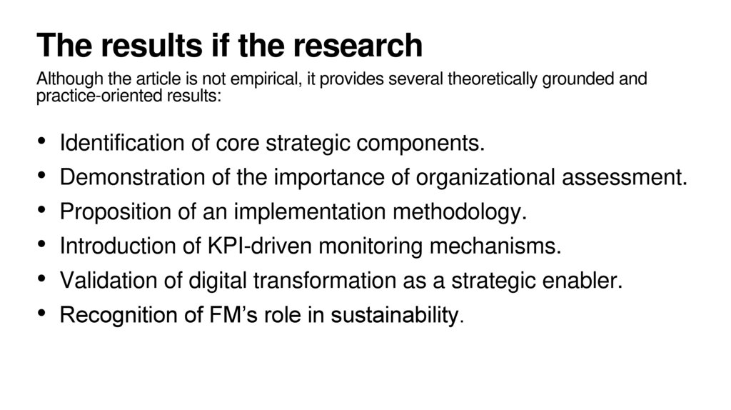 The results if the researchAlthough the article is not empirical, it provides several theoretically grounded and