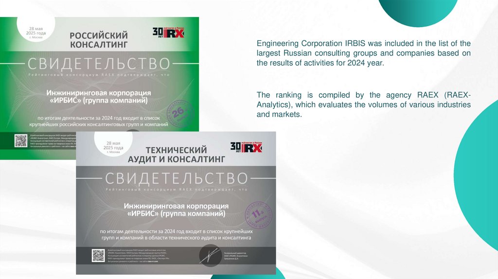Engineering Corporation IRBIS was included in the list of thelargest Russian consulting groups and companies based on
