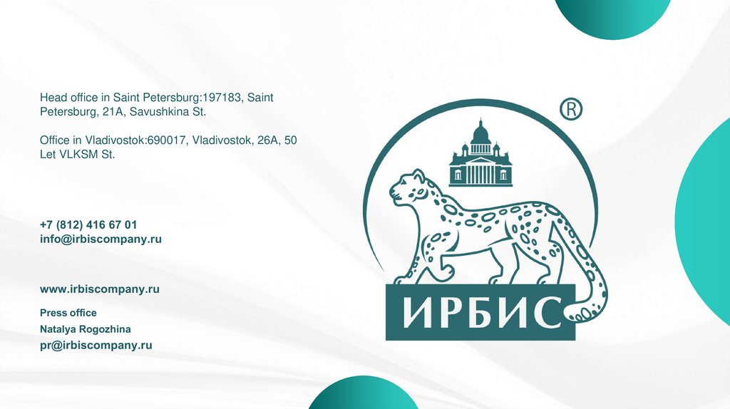 Head office in Saint Petersburg:197183, SaintPetersburg, 21A, Savushkina St.