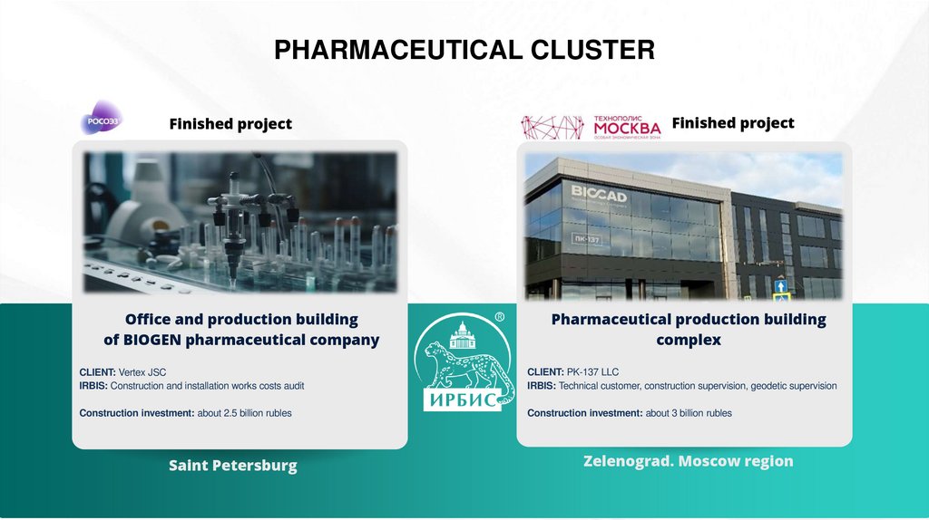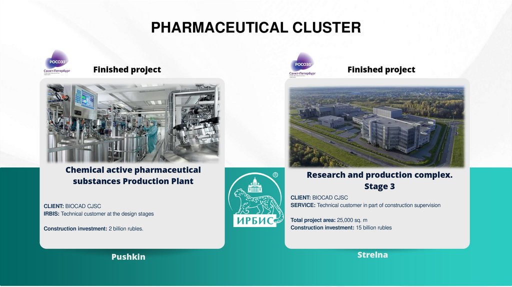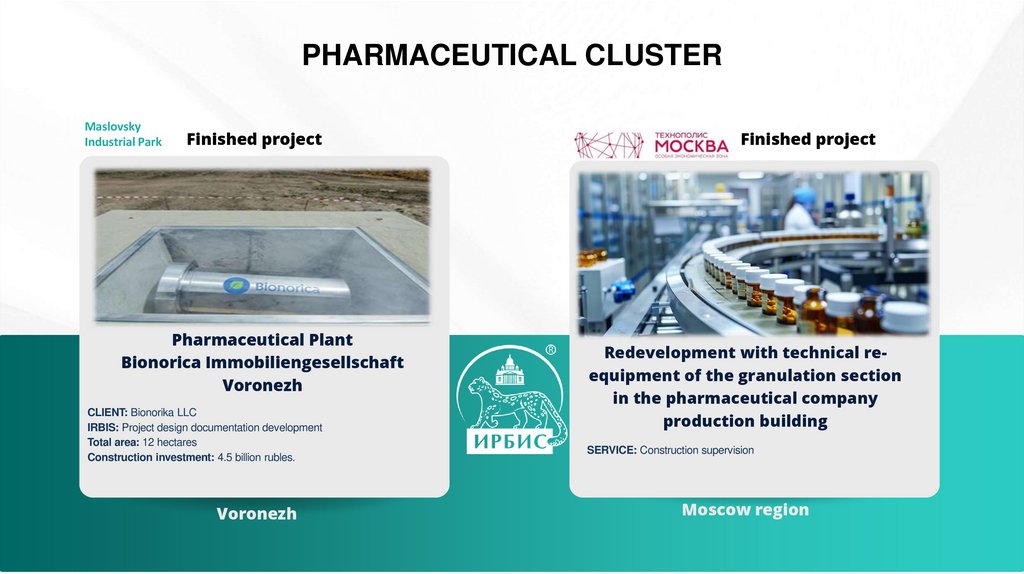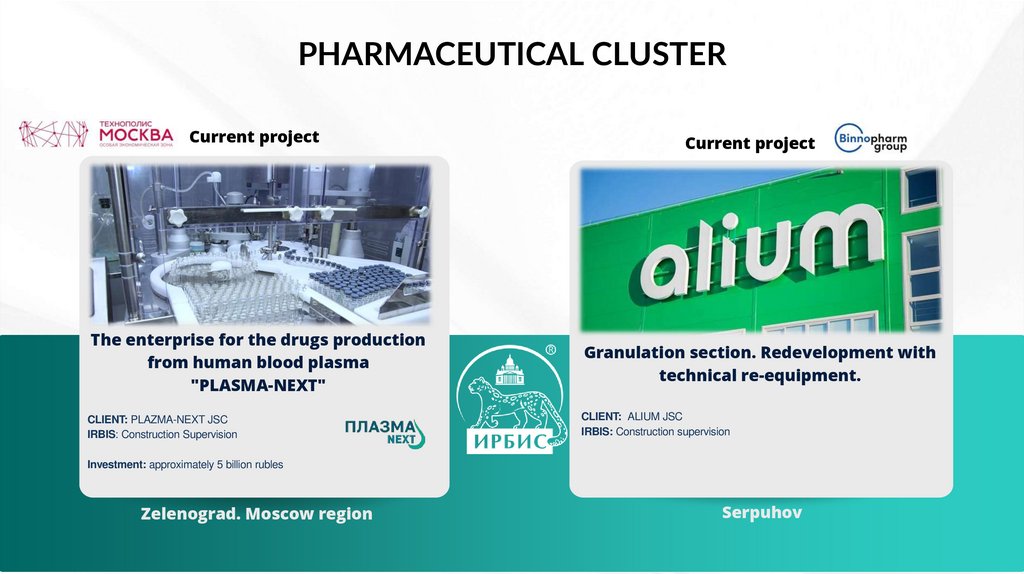 PROJECTS INVOLVING IRBIS.PHARMACEUTICAL CLUSTER.