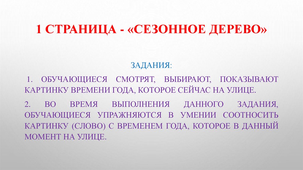 1 СТРАНИЦА - «СЕЗОННОЕ ДЕРЕВО»ЗАДАНИЯ: