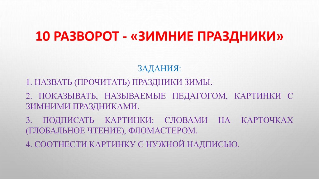 10 РАЗВОРОТ - «ЗИМНИЕ ПРАЗДНИКИ»ЗАДАНИЯ: