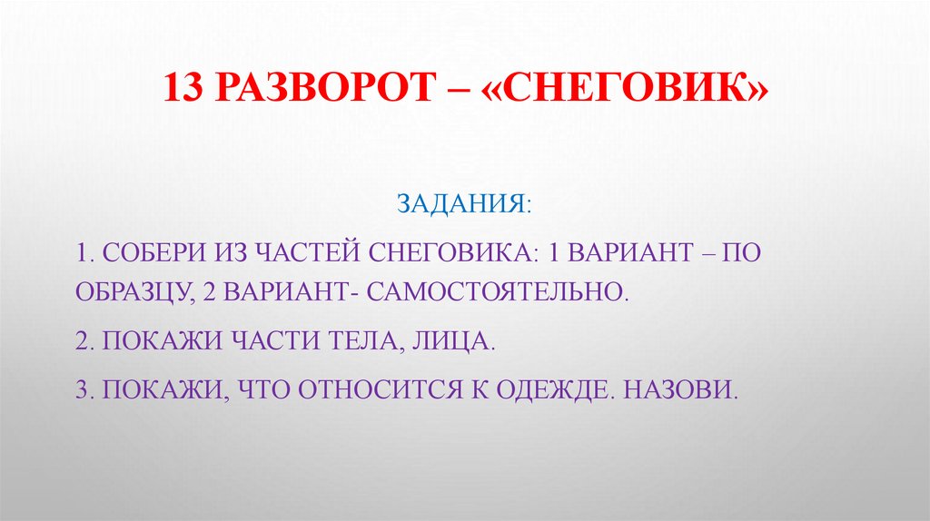 13 РАЗВОРОТ – «СНЕГОВИК»ЗАДАНИЯ: