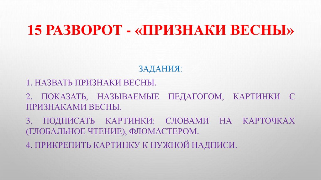 15 РАЗВОРОТ - «ПРИЗНАКИ ВЕСНЫ»ЗАДАНИЯ:
