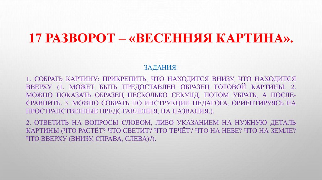 17 РАЗВОРОТ – «ВЕСЕННЯЯ КАРТИНА».ЗАДАНИЯ: