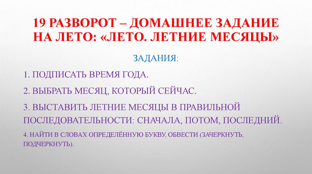 19 РАЗВОРОТ – ДОМАШНЕЕ ЗАДАНИЕНА ЛЕТО: «ЛЕТО. ЛЕТНИЕ МЕСЯЦЫ»