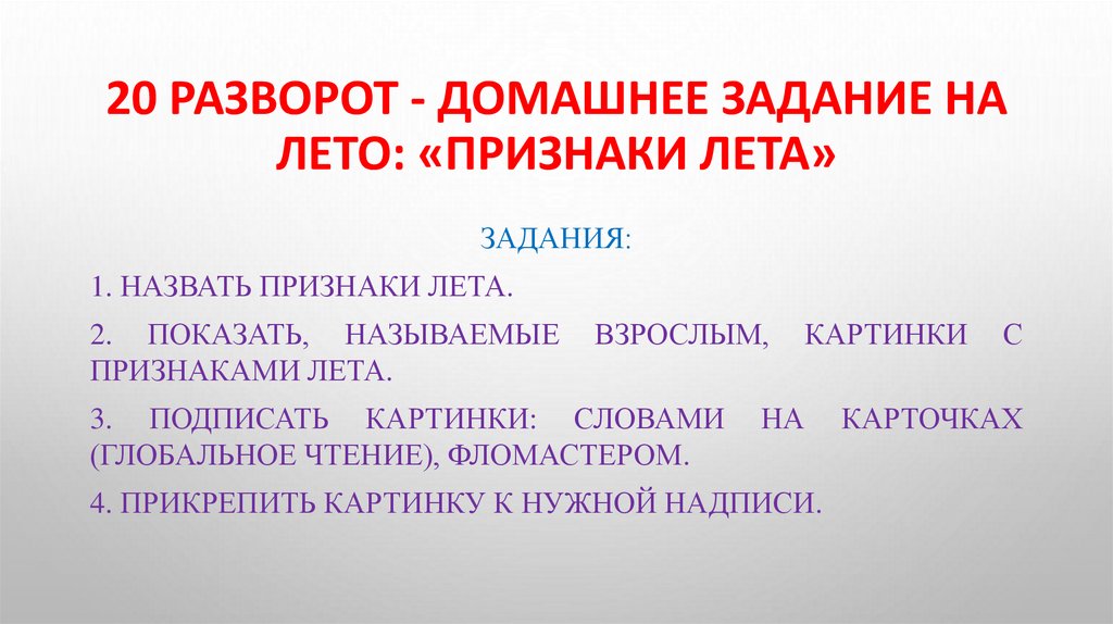 20 РАЗВОРОТ - ДОМАШНЕЕ ЗАДАНИЕ НАЛЕТО: «ПРИЗНАКИ ЛЕТА»