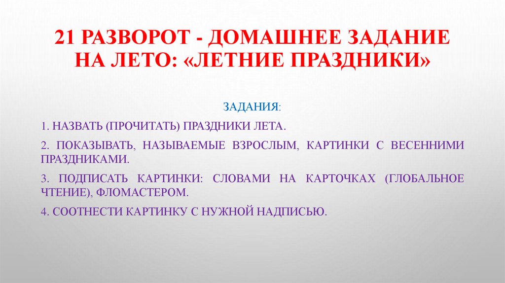 21 РАЗВОРОТ - ДОМАШНЕЕ ЗАДАНИЕНА ЛЕТО: «ЛЕТНИЕ ПРАЗДНИКИ»