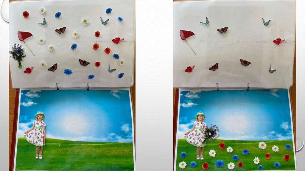 6. ПОСМОТРЕТЬ И НАЗВАТЬ, ЧТО У ДЕВОЧКИ В РУКАХ (САЧОК). ВЫБРАТЬ (НАЗВАТЬ), КОГО СОБИРАЕМ В САЧОК (БАБОЧКИ ИЛИ