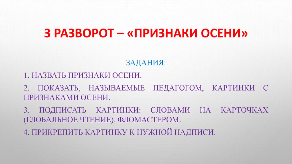 3 РАЗВОРОТ – «ПРИЗНАКИ ОСЕНИ»ЗАДАНИЯ: