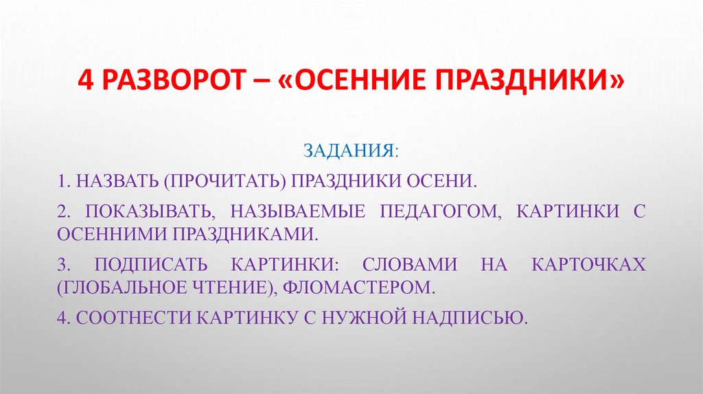 4 РАЗВОРОТ – «ОСЕННИЕ ПРАЗДНИКИ»ЗАДАНИЯ: